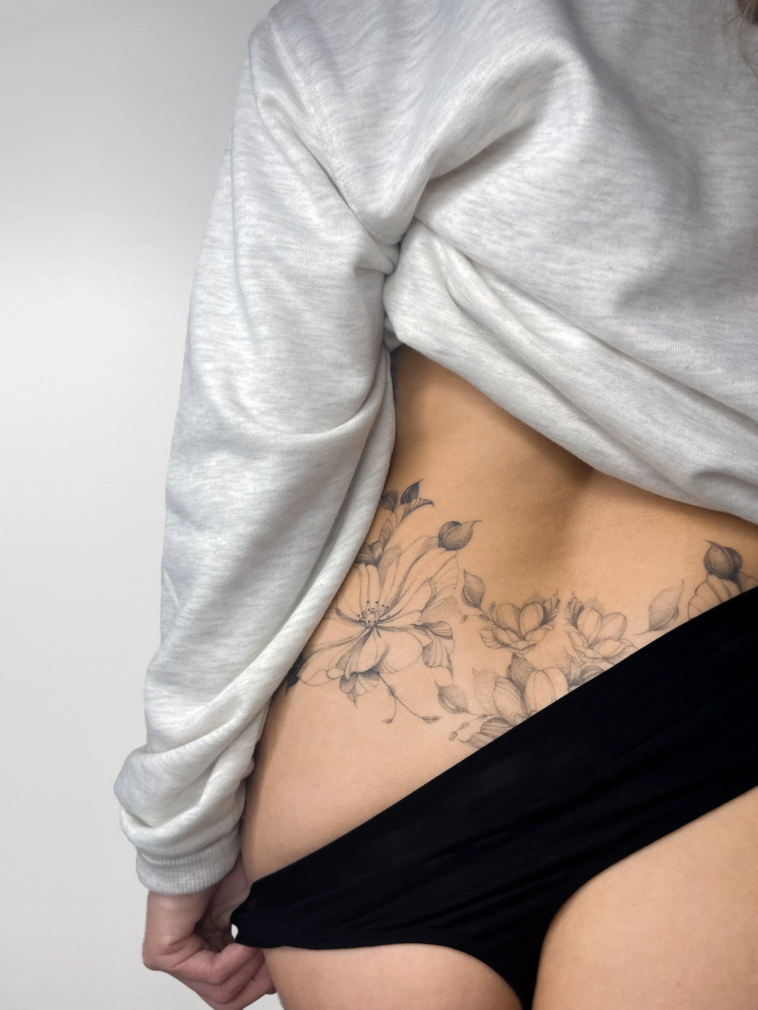 En tant qu'artiste, je me dédie à la création de tatouages à lignes fines qui célèbrent le mouvement naturel de vos courbes et la délicatesse florale. Mon processus créatif est collaboratif. Ma mission est de faire de votre vision une réalité artistique et durable.